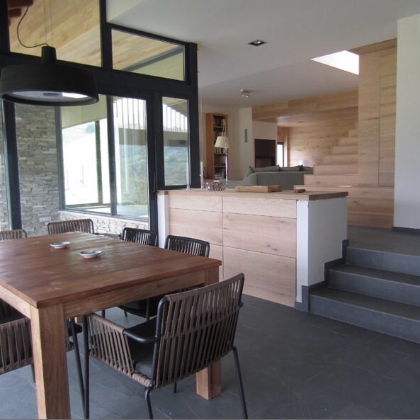 Ubicación: Figaró- Montmany Cliente: Una señora conservadora con las ideas muy claras, necesito un espacio para mis animales, mi hija y para mi. Nuestro proyecto: En esta obra a diferencia de las otras nos encontramos solo con un terreno, así que empezamos de cero y acabamos con un gran resultado, una vivienda cómoda, acogedora y elegante, con un patio superior y otro inferior por el desnivel del terreno.