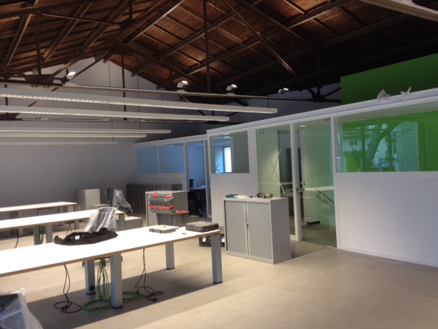 Ubicación: Granollers Cliente: Compañía eléctrica, tienen la necesidad de ampliar sus oficinas, creando un espacio cómodo para trabajar. Nuestro proyecto: Nuestro equipo se encuentra con una nave industrial en muy mal estado. Creamos un forjado intermedio de 300 m², donde la parte inferior se dividió en diferentes salas de reuniones y la parte superior se creo un espacio diáfano, conservando la madera del techo y sus grandes encaballadas para darle un toque industrial. Se realizó un proyecto paisajístico donde se realizó un jardín flotante en la parte superior y se adecuó la zona de acceso al edificio.